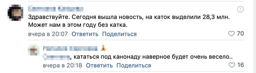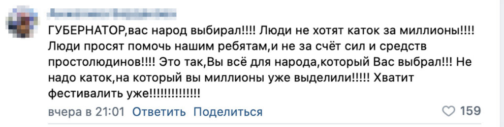 14 сентября белгородские журналисты сообщили, что регион планирует потратить более 28 миллионов рублей на монтаж ледового катка к Новому году. Новость вызвала возмущение жителей: они стали обращаться к губернатору Вячеславу Гладкову с требованием отменить все ближайшие праздники, отказаться от установки катка и отдать эти деньги Российской армии.