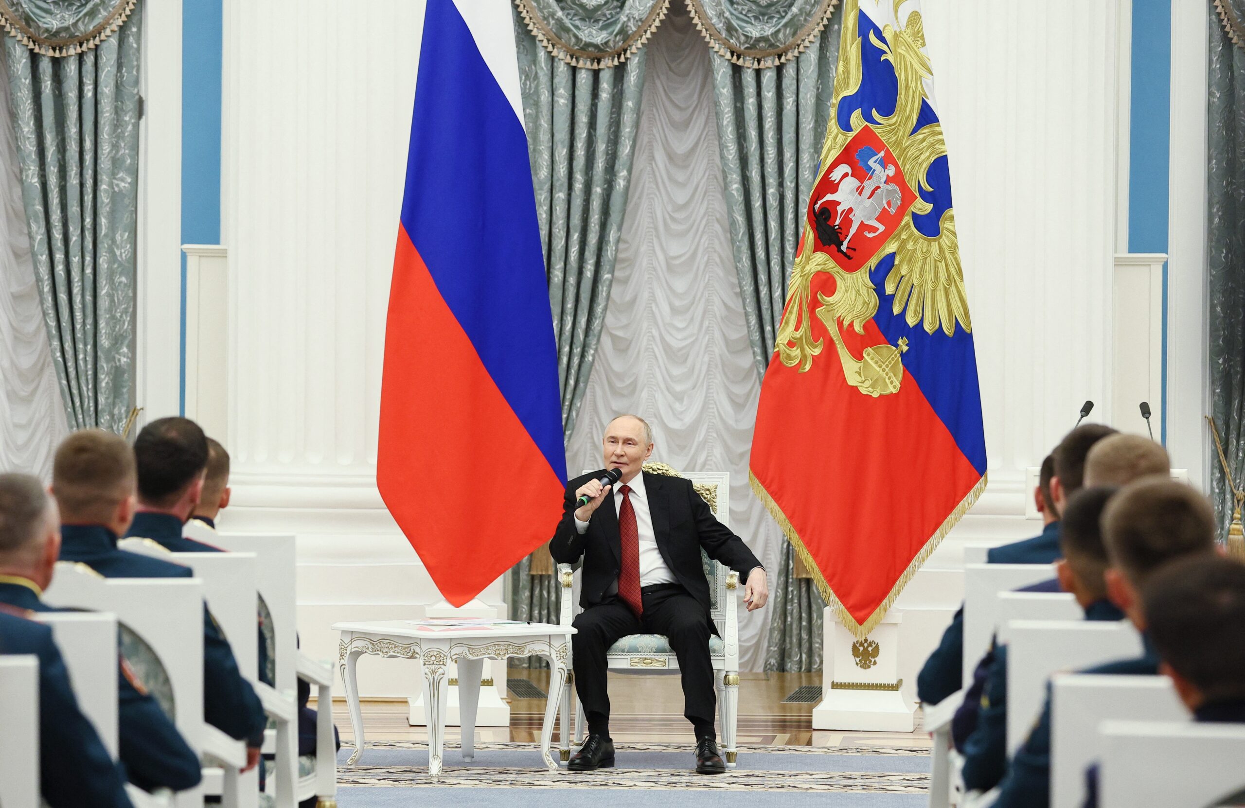 Фото: Владимир Путин встречается с участниками программы «Время героев» в Кремле, 12 июня 2025 года. Sputnik/Sergei Bulkin/Pool via REUTERS