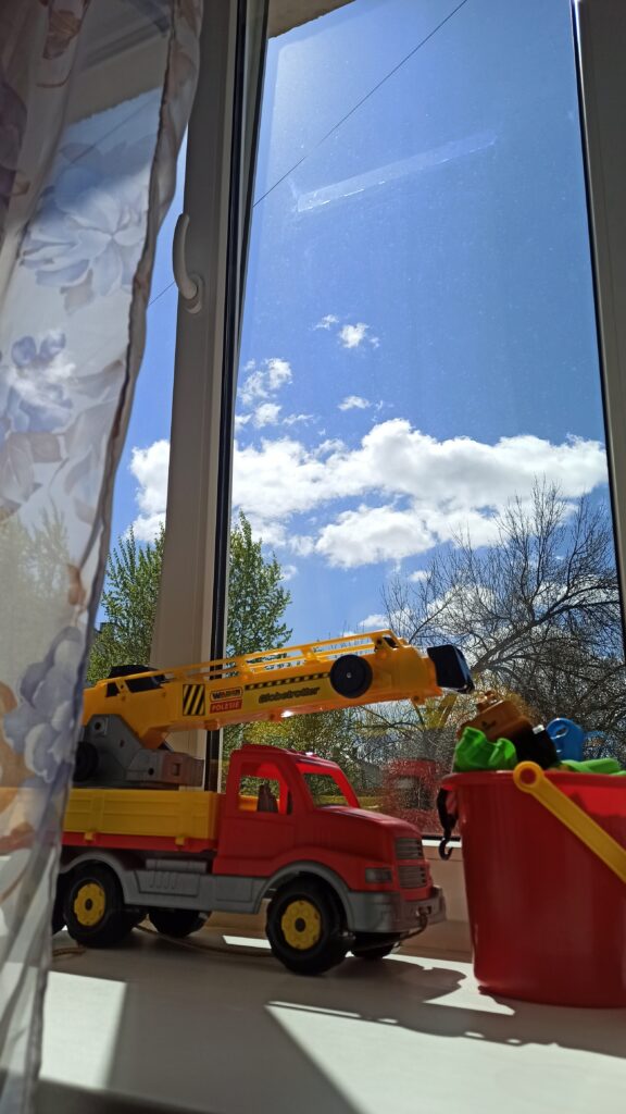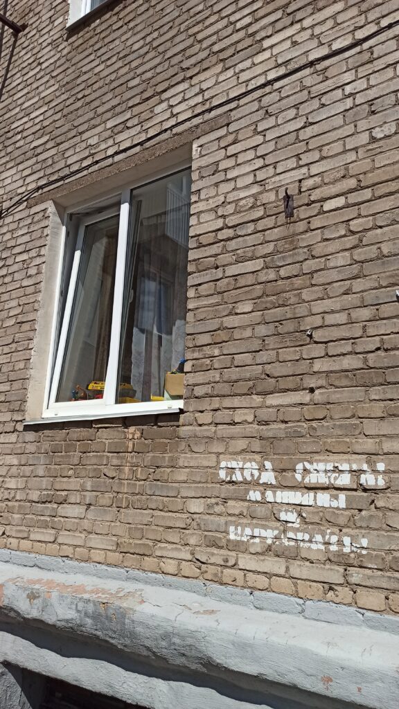 В комнате, которую занимают Регина с Аланом, только одно окно, и оно выходит во двор. На подоконнике — красное ведерко и игрушечный подъемный кран. Это окно видит каждый, кто заходит в дом или выходит из подъезда покурить. Именно на него Регина повесила антивоенные плакаты. Она говорит, что ей важно было донести до жителей дома, что то, что происходит в Украине, — не «спецоперация», а полноценная война.