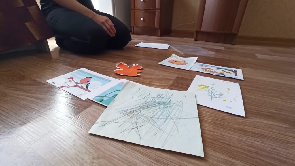 Надпись сделана ровно, без ошибок — видно, что двухлетнему ребенку такая работа не под силу. Однако Сафонова в своем доносе написала, что Регина якобы диктовала сыну, что нужно писать. «Она же художница. Наверное, подумала, что взрослый дееспособный человек не может рисовать такие скромные плакаты», — говорит Регина. Она показывает рисунок Алана из детского сада — листок бумаги с хаотичными росчерками. «Вот так рисует мой ребенок», — говорит она.