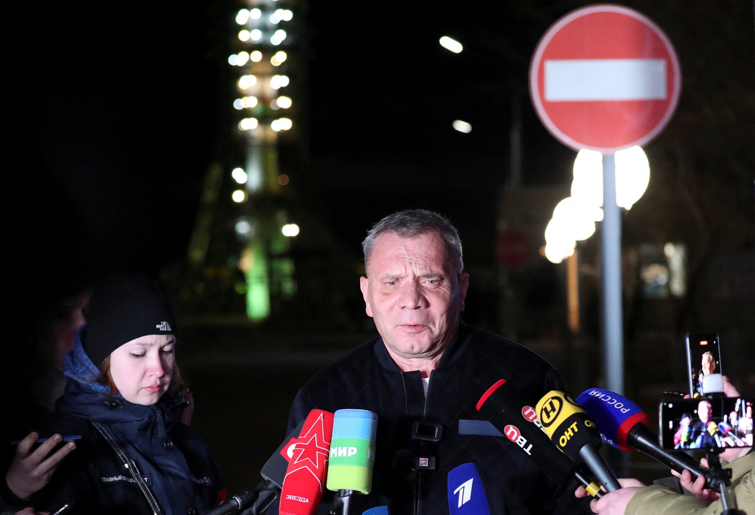 Фото: Юрий Борисов, экс-генеральный директор российской государственной корпорации «Роскосмос», встречается с журналистами после отмены запуска космического корабля «Союз МС-25» на космодроме Байконур, Казахстан, 21 марта 2024 года. REUTERS/Pavel Mikheyev