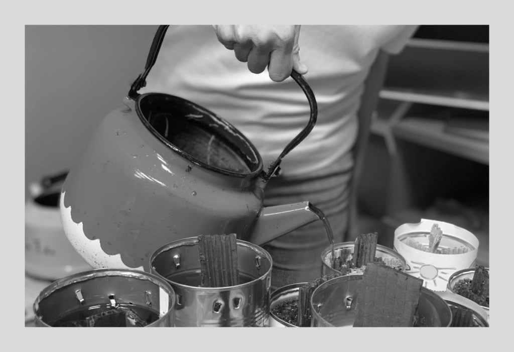 В интернете можно найти много видеоинструкций по изготовлению окопных свечей. Технология несложная: нужно набить консервную банку гофрокартоном и залить воском. Но Светлана Плюхина утверждает, что методом проб и ошибок разработала собственный метод — рассчитала, в каком соотношении смешивать воск и парафин, чтобы свечка горела лучше и дольше.