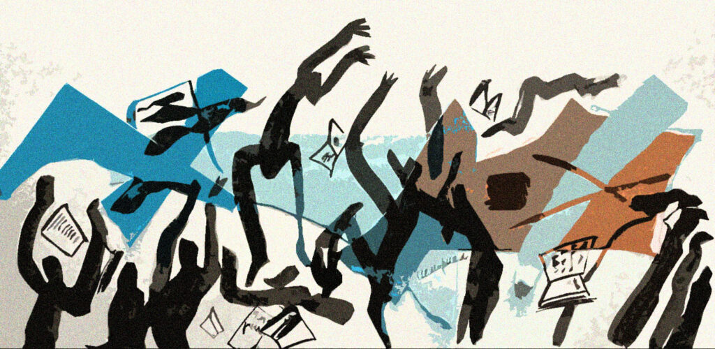 —Конечно. Только мы это поняли задним числом. Ситуация вокруг «Мемориала» ухудшалась постепенно, и мы не думали, что будет сразу ликвидация. Не ожидали, что нас стремительно накроет цунами. Правда, незадолго до этого было событие, которое все-таки отличалось от прежних скандалов и наездов. Это была подстроенное с помощью НТВ нападение, когда в октябре 2021 во время показа в «Мемориале» фильма «Голод» Агнешки Холланд в наш зал ворвались не нодовские фрики, а сорок молодых людей в черном и со скрытыми лицами. Сразу возникла ассоциация с 1933 годом в Германии, когда во время спектаклей врывались отряды штурмовиков и устраивали погром. Вот мы смотрим этот фильм, стоят на улице НТВ-шники, которые сначала снимали тех, кто шел на просмотр, а потом, как стало ясно, поджидали этих молодчиков. И кто-то из них, вероятно, заранее под видом зрителя проник в зал и открыл им другой вход. И тогда прямо на сцену ворвались эти бойцы, загородили собой экран и стали скандировать: «Руки за голову! Морды в пол!».