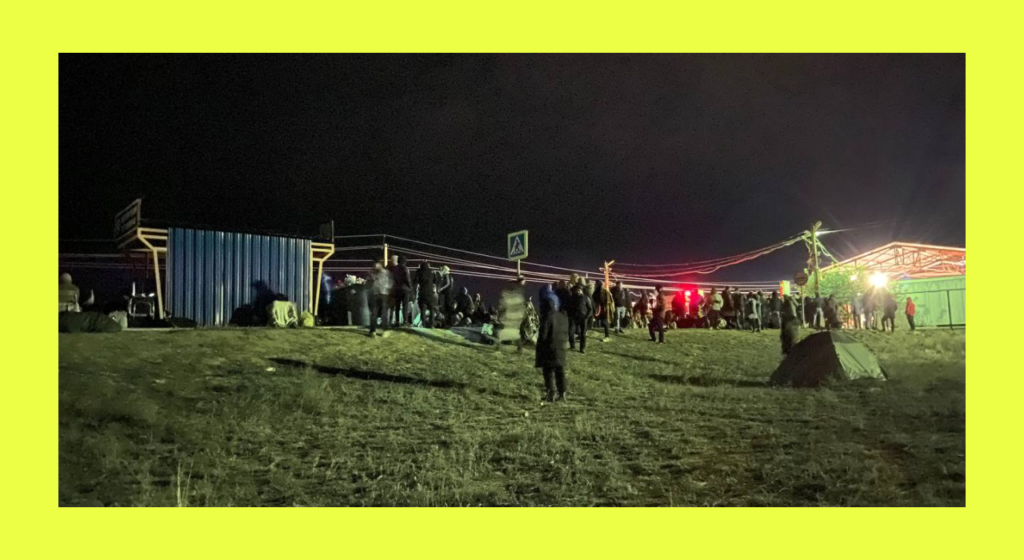 «Люди из машин повыходили, чтобы в случае чего стенка на стенку отстоять свои места. Казахстанцы начали кричать, что не могут домой попасть, это были не только таксисты, но и обычные люди. Говорили: „Почему я должен страдать из-за того, что вы бежите из своей страны?“ Были и драки, кому-то разбили лобовое стекло», — рассказывает Евгений.