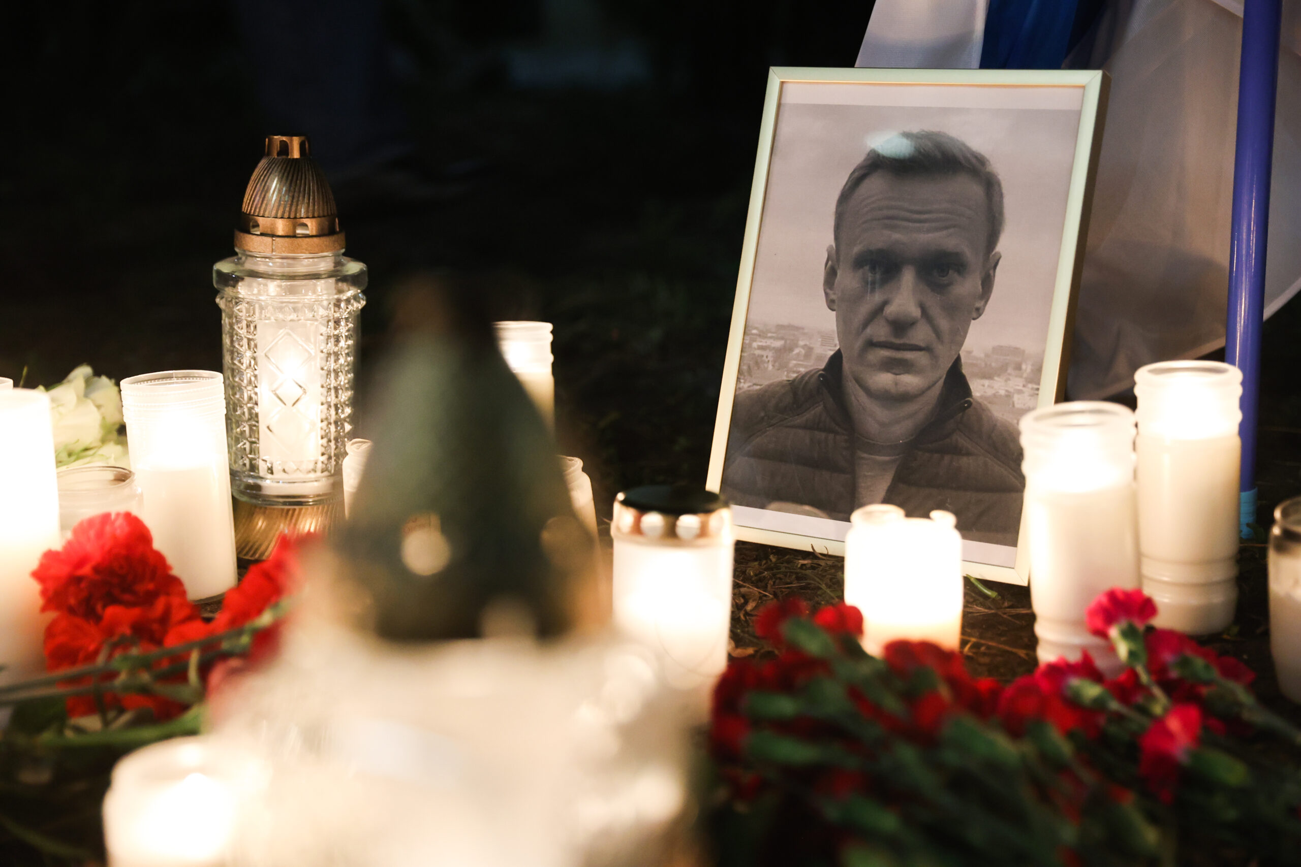 Фото: Стихийный мемориал в память Алексея Навального под российским консульством в Кракове. Jakub Porzycki/NurPhoto via Reuters