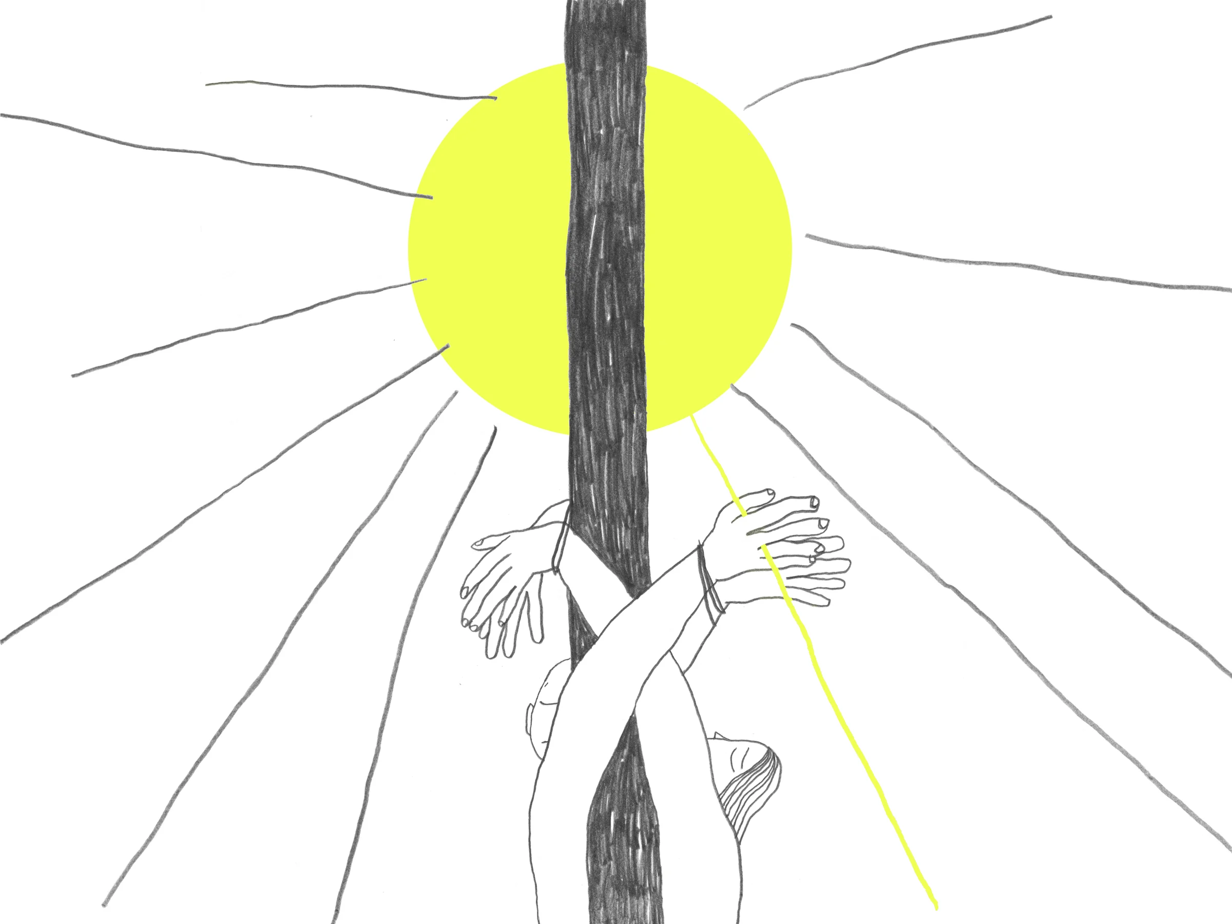 Пупкову и Байгузина повезли не в отделение, как они ожидали, а в центр города. «Нас высадили в переулке, — говорит Пупкова. — Как потом выяснилось, в нём нет камер. Заставили вытянуть руки вверх и приковали к столбу. Мы простояли так два часа на тридцатиградусной жаре».