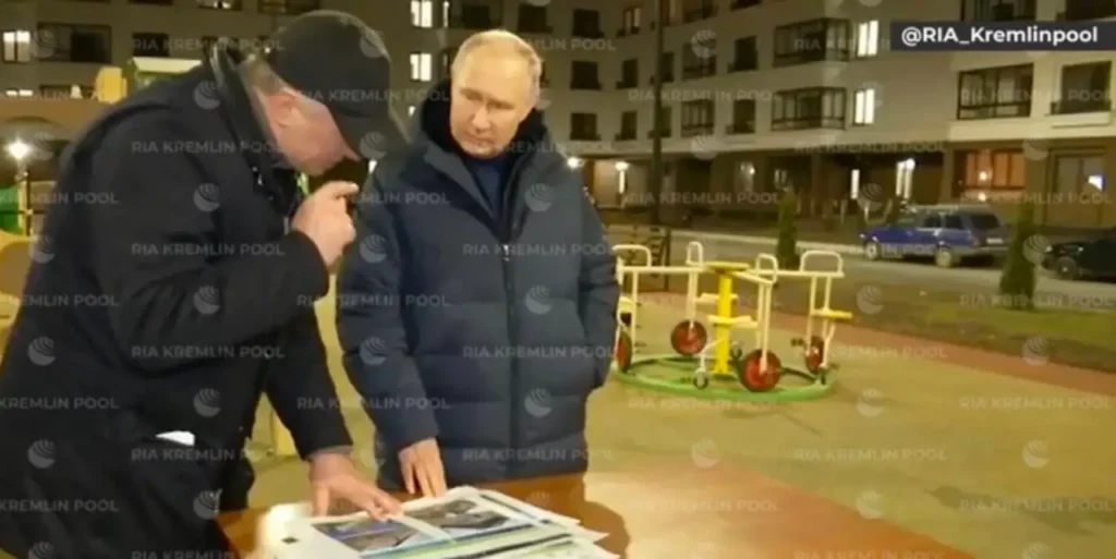 ЖК показали на фотографии и видеозаписях в телеграм-канале RIA Kremlinpool. На детской площадке этого комплекса Путин даже якобы пообщался с местными жителями. Фотографии этого же ЖК можно найти в интернете, например ещё в октябре СМИ писали, что комплекс был сдан в эксплуатацию.