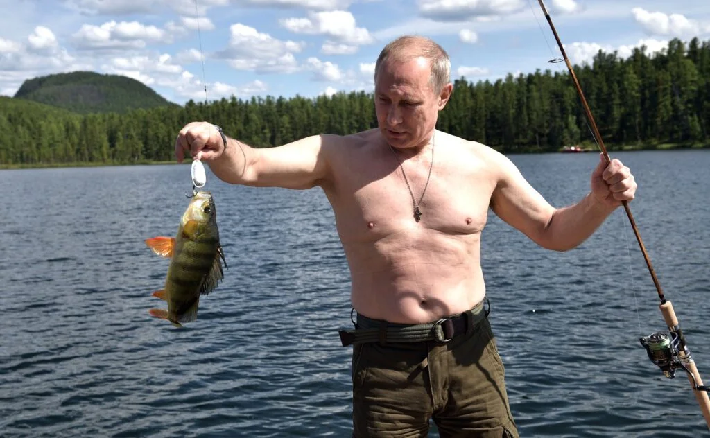 Параллельно Путин утверждался и в другом предельно маскулинном образе — демонстрировал себя публике как настоящий мачо. Фотографировался с голым торсом на лошади, поднимался в небо на дельтаплане, в новостях подчеркивали, что глава России отдыхает в Сибири — то есть отдых был экстремальным, в народе считающимся «мужским». Президент рыбачил, ночевал в палатке, компанию ему стал составлять глава МЧС Сергей Шойгу — путинский туроператор маскулинного отдыха.