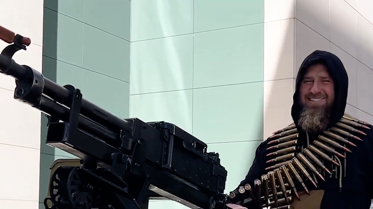 Фото: Рамзан Кадыров позирует рядом с пулемётом, установленным им на Tesla Cybertruck. RKadyrov_95 via Reuters