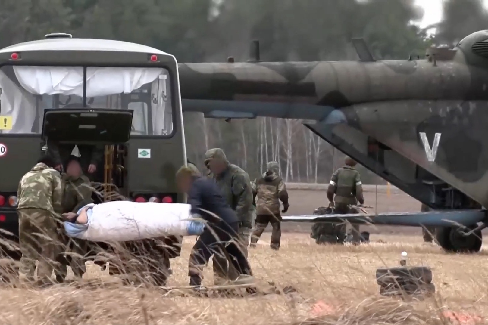Фото: Вертолёт, отправляющий раненых солдат в полевой госпиталь в неустановленном месте на территории Украины. 28 марта 2022 года. Russia MOD/EYEPRESS via Reuters