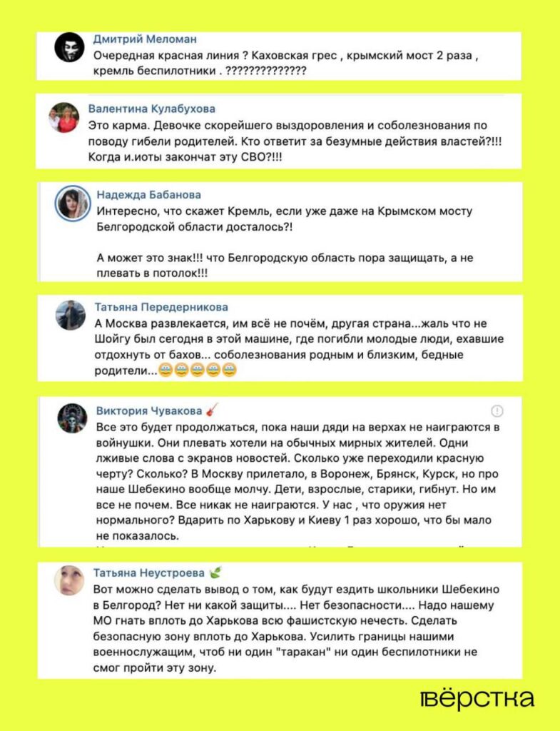 Жители Белгородской области после взрыва на Крымском мосту просят власти «усилить границы» и интересуются, когда «дяди на верхах наиграются в войнушку» .