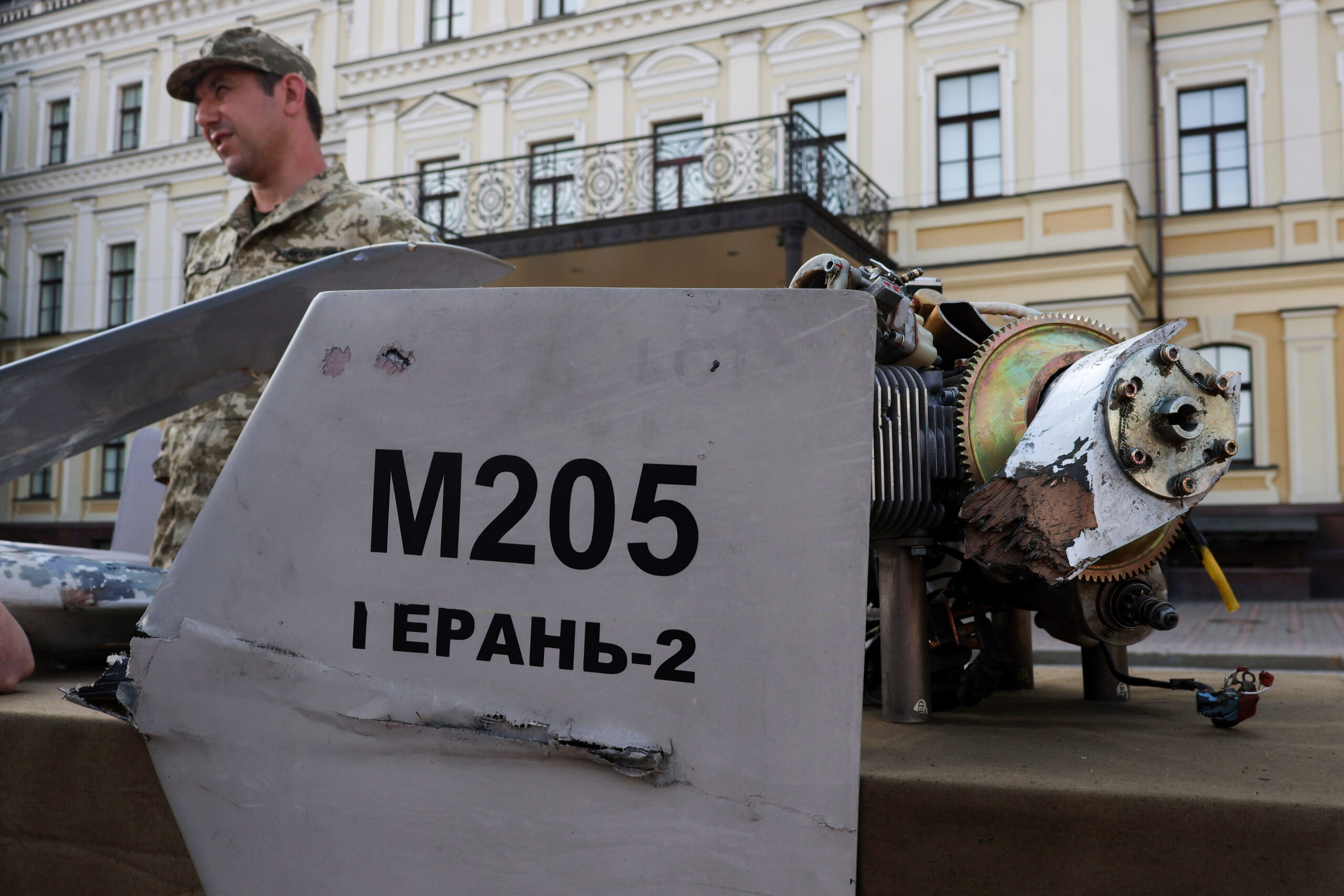 Фото: Фрагменты иранского дрона Shahed-136 (в России названного «Герань‑2»), установленные как символ войны в центре Киева. Aleksandr Gusev / SOPA Images/Sipa USA via Reuters