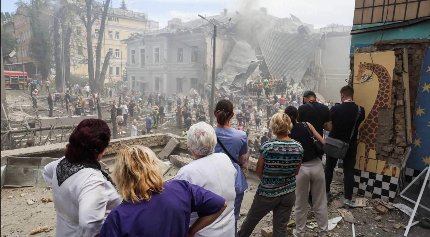 Фото: Последствия ракетного удара ракетного удара по «Охматдету». REUTERS/Gleb Garanich