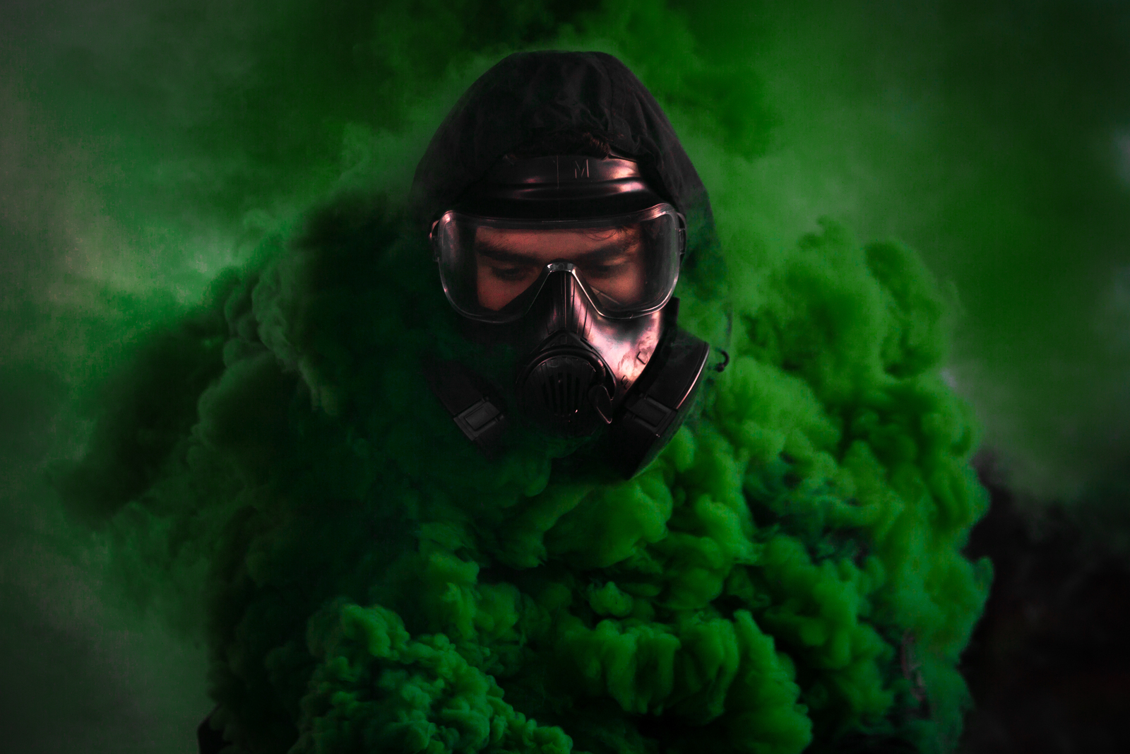 Фото: Человек в противогазе и клубах зелёного дыма, иллюстративное фото. U. S. Marine Corps/Cover Images via Reuters
