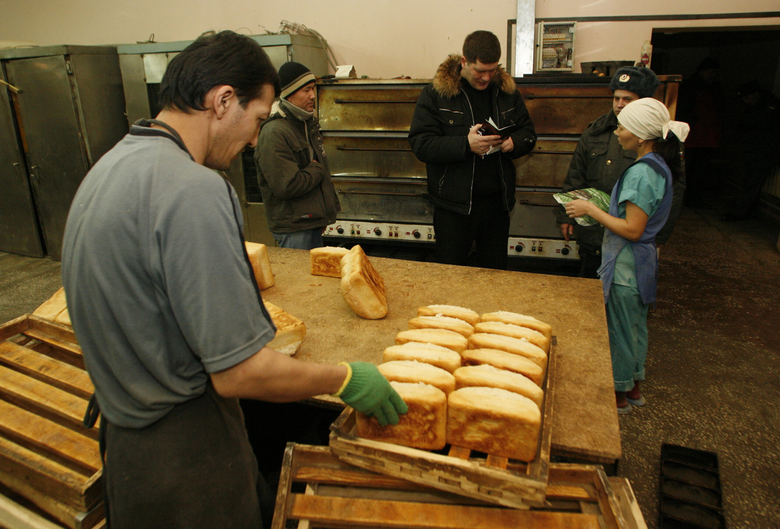 Фото: Полиция проверяет документы у мигрантов в одной из пекарен Красноярска. REUTERS/Ilya Naymushin
