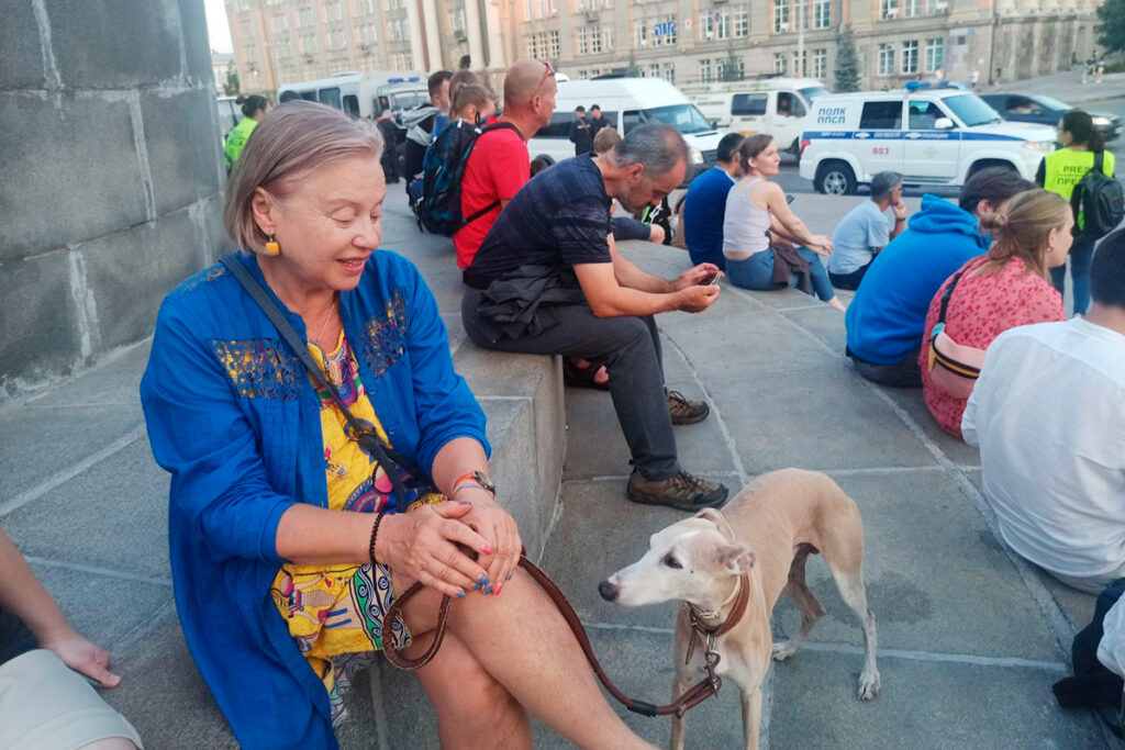 Весь день екатеринбуржцы выходят в пикеты с требованием освободить Евгения Ройзмана. К вечеру стихийные акции продолжаются у Музея Невьянской иконы. Девушка с голубыми волосами встаёт с плакатом «Всех не пересажаете», поставив рядом рюкзак и бутылку питьевой воды. «Мой дядя был героиновым наркоманом, и Ройзман его спас. За таких людей держаться надо», — объясняет она. К ней подходят сразу четверо полицейских, и через несколько минут её уводят в полицейский бобик. «Как мне объяснили, потому, что рядом встал другой пикетчик», — говорит она, имея в виду мужчину в тренировочных штанах и в солнцезащитных очках, который подошёл позднее с плакатом «Свободу Ройзману! Мнение не преступление!» Его тоже задерживают.